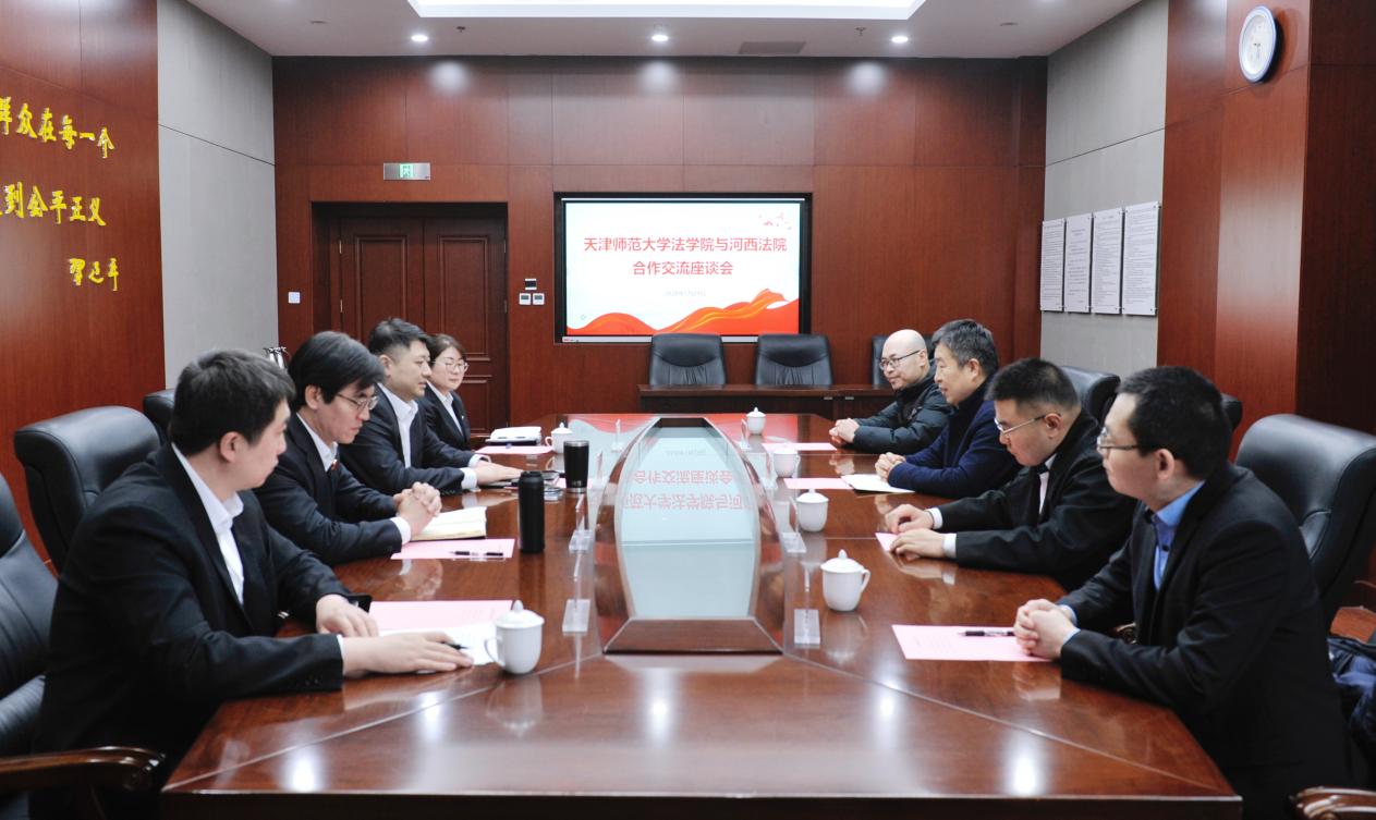 1月29日上午,郝磊带队赴河西区人民法院走访交流,我院党委副书记、纪委书记秦浩,党委委员、副院长郭明龙,刑法教研室主任王海军教授一同调研。河西区法院党组副书记、副院长孙政,审管办(研究室)主任肖宝清,审管办(研究室)副主任李硕,审管办(研究室)干部姬鹏等参加座谈交流。孙政对我院领导一行的到来表示欢迎,并指出河西法院与师大法学院一直保持着紧密联系,希望未来将双方的合作关系进一步提升深化,以期更好推动双方的发展,实现互进共赢。郝磊对河西法院长期以来对师大法学院发展所给予的支持表示衷心感谢,并从学科情况、人才培养、科学研究、社会服务等方面介绍了学院近年来的发展情况,表示师大法学院期待在更深层次、更广泛领域与河西法院开展深入的合作交流。双方与会人员一致认为,协同育人是培养高素质法治人才的关键路径。我院提出将进一步优化学生实习管理、组织学生旁听开庭等系列建议,以期切实强化学生的法学实践体验,提升学生就业竞争力。河西法院领导表示,将进一步做好学生实习管理和服务,并在联合开展普法宣传、课题调研等方面与我院深化合作,以期构建协同育人的良性发展格局。