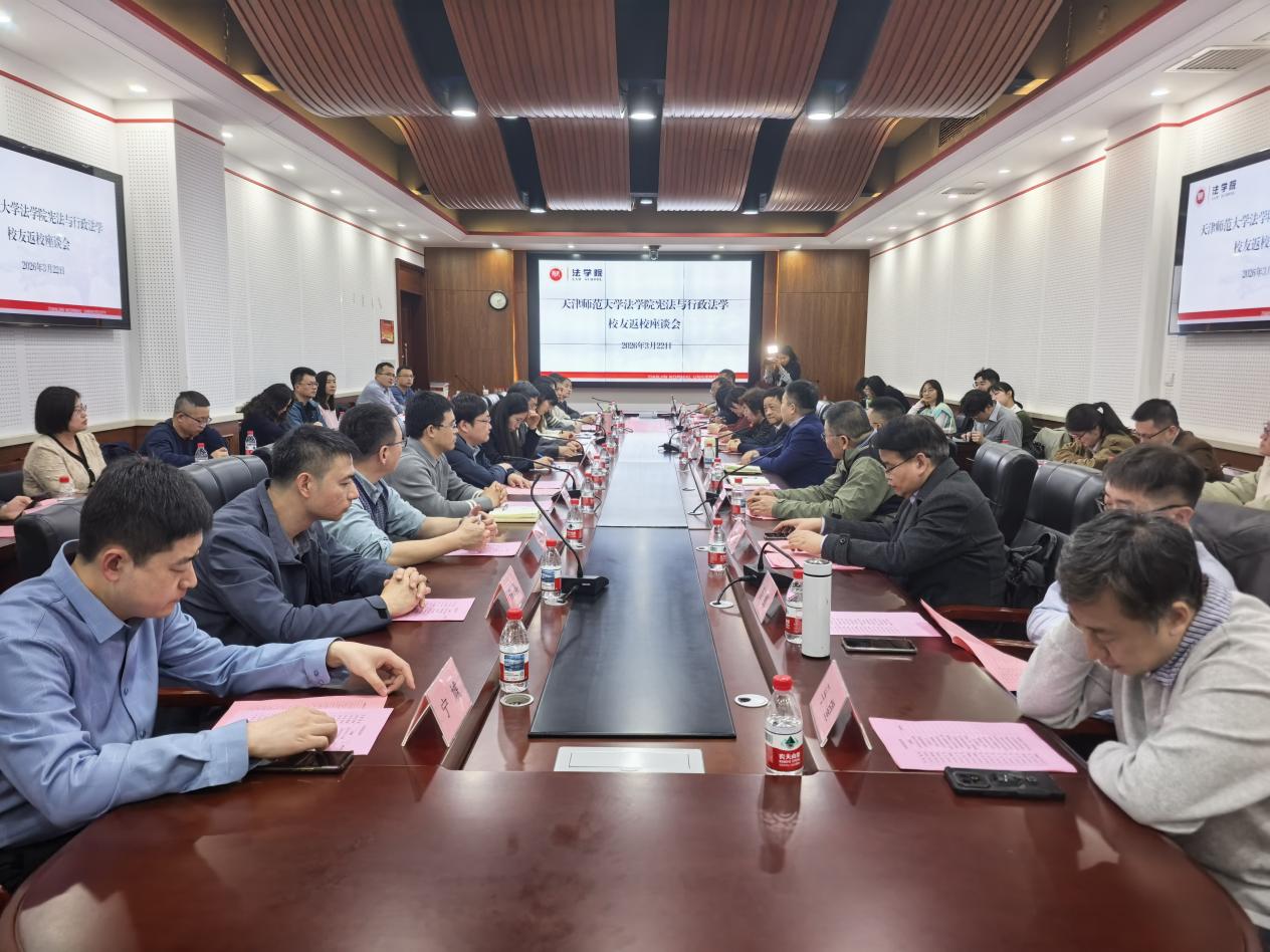 2026年3月22日,天津师范大学法学院宪法学与行政法学专业校友返校研讨会在澍泽学术报告厅顺利举行。各界优秀校友重返母校,与学院领导、师长齐聚一堂,共忆求学时光、共话学院发展、共商法治人才培养大计。